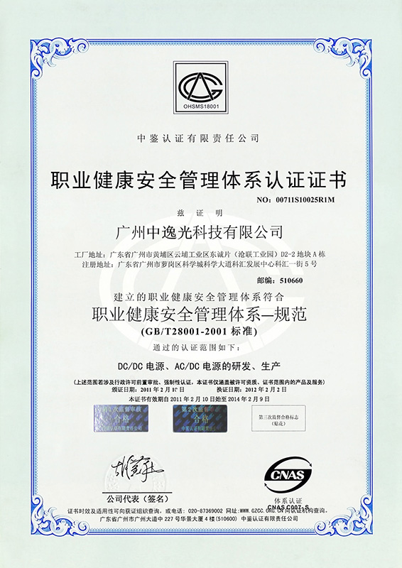 職業(yè)健康安全管理體系認證證書